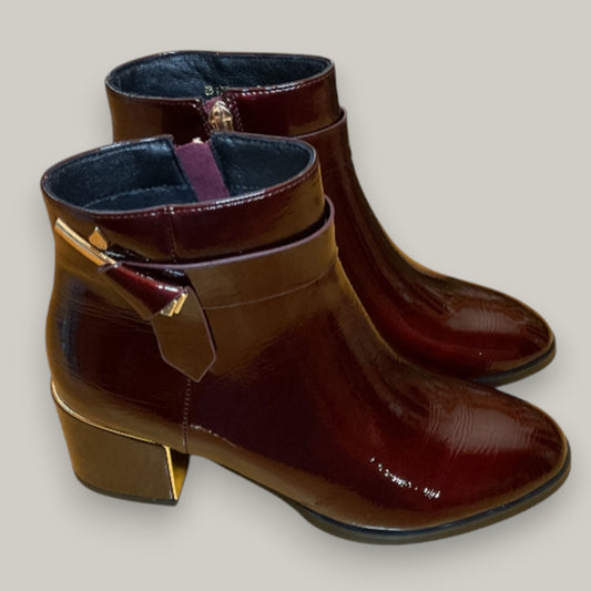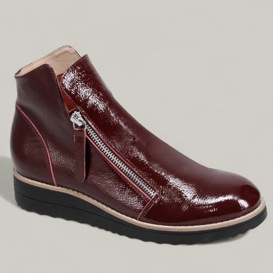 Little Empresses - Vegan Patent Leather Buckle Front Side Zip Boot
