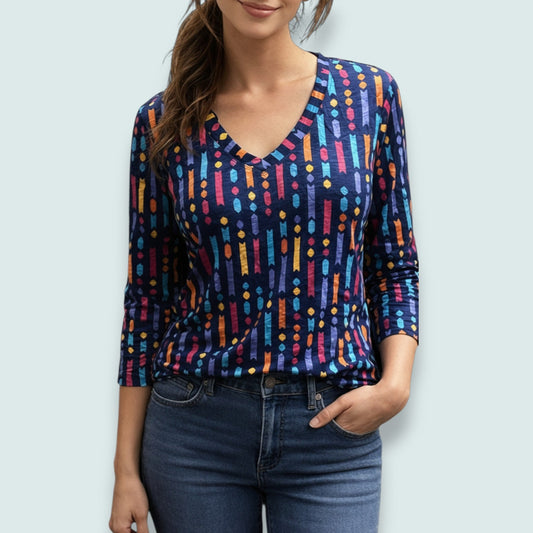 Lasania - V-Neck Patterned Top