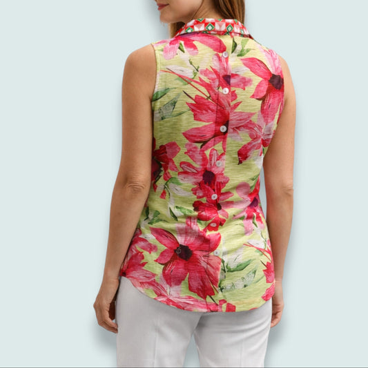 Tango Mango - Bloom & Pattern Sleeveless Collared Blouse