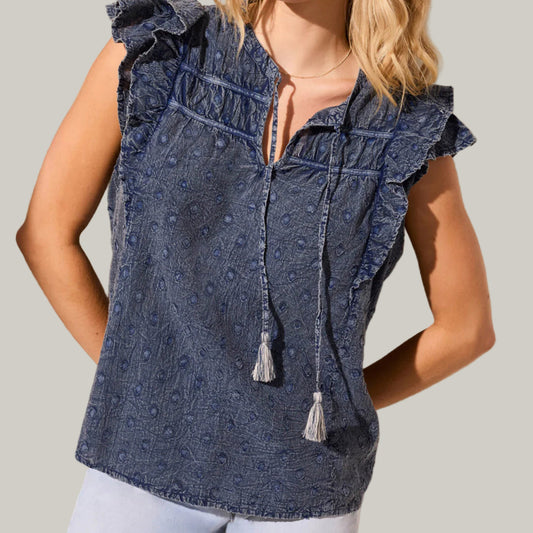 Tribal - Printed Sleeveless Blouse With Crochet Trim