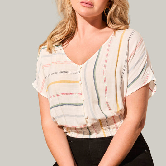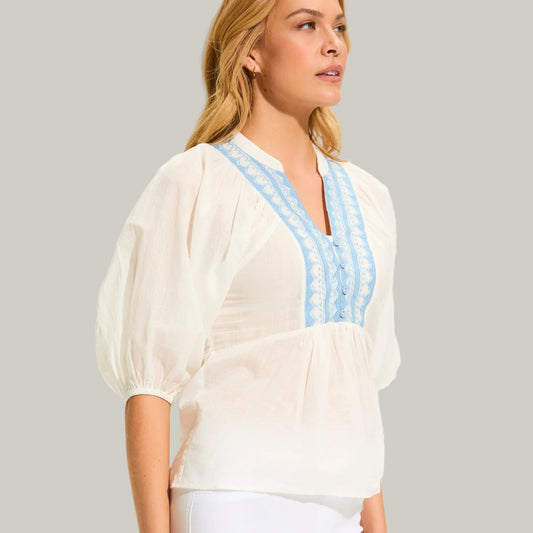 FDJ - 3/4 Mesh Bell Sleeve Top - Ivory