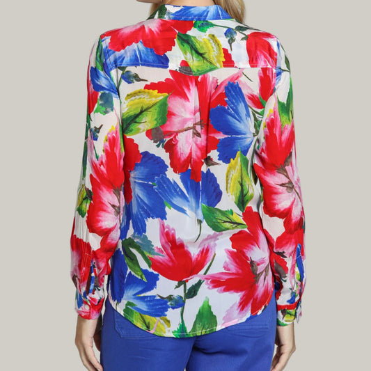 APNY - Floral Print Blouse With Roll-Up Sleeve