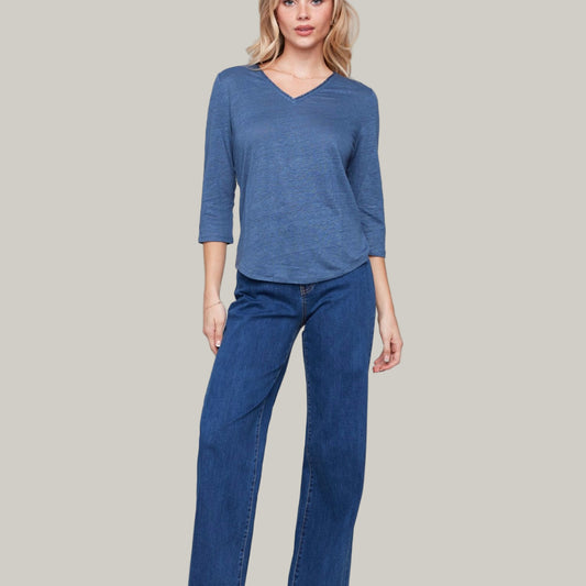 FDJ - 3/4 Sleeve Drop Shoulder Boat Neck Top