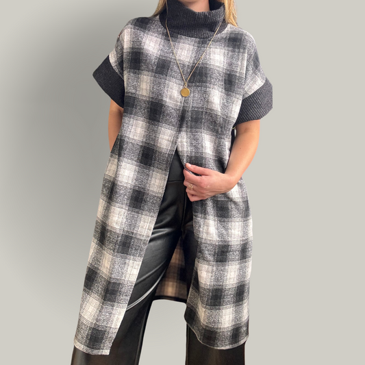 Trisha Tyler - Plaid Slit Front Topper Vest