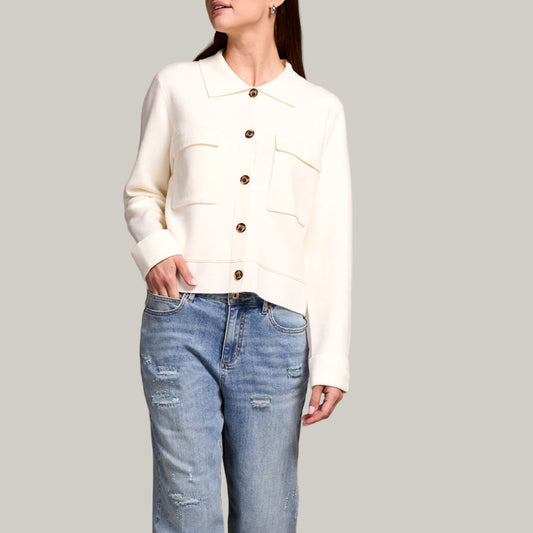 Tribal - Scuba Knit Textured Mock Neck Cardigan