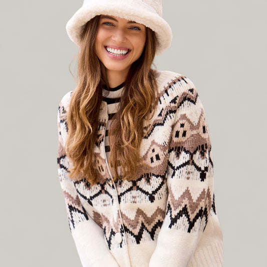Tribal - Fair Isle Button Front Sweater Cardigan
