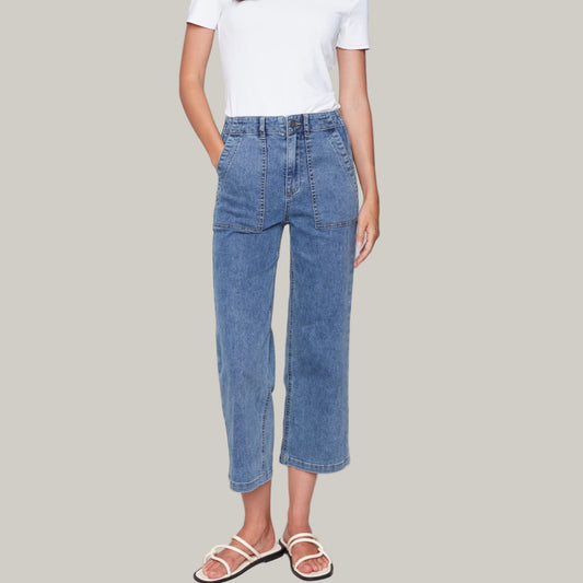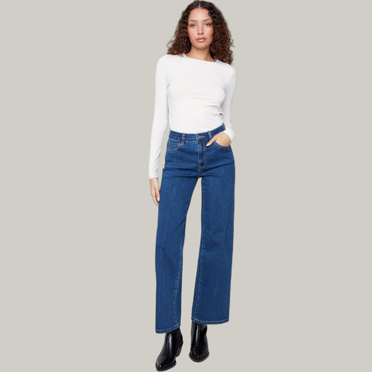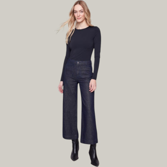 Charlie B - Cropped Wide Leg Stretch Denim Jeans