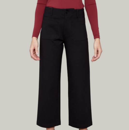 Charlie B - Patch Pocket Wide Leg Cropped Ponte Pants