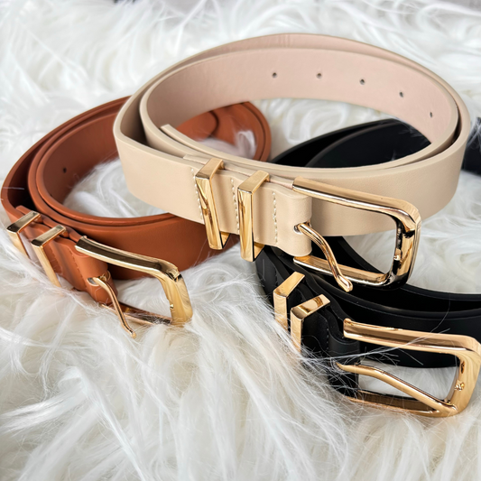 Audrey's - Essential Faux Leather Belt With Gold Buckle