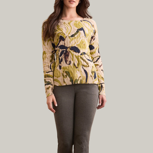 Tribal - Printed Cable Cotton Crew Neck Sweater