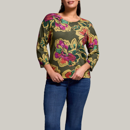 Tribal - Soft Yarn Three-Quarter Sleeve Crewneck Sweater