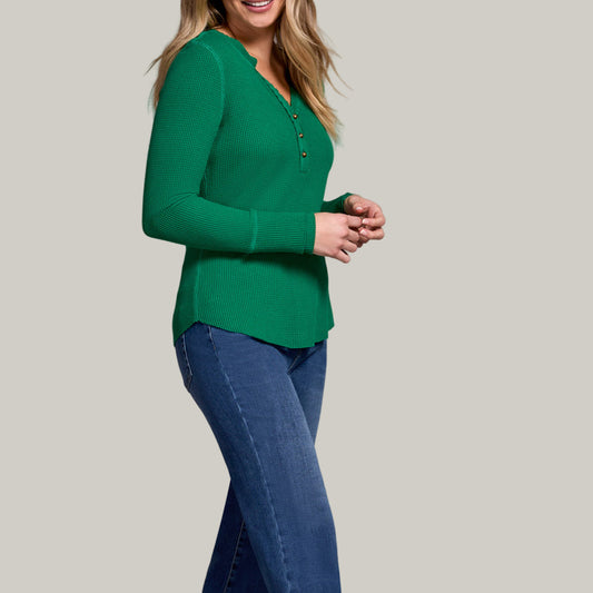 Tribal - Brushed Waffle Knit Henley Long Sleeve Top