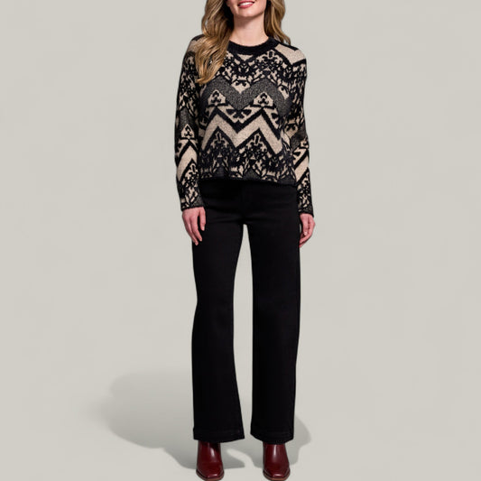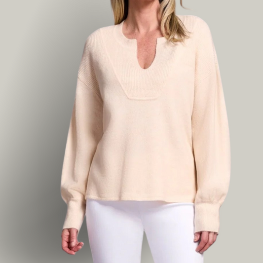 Tribal - Mandarin Collar Long Puff Sleeve Sweater