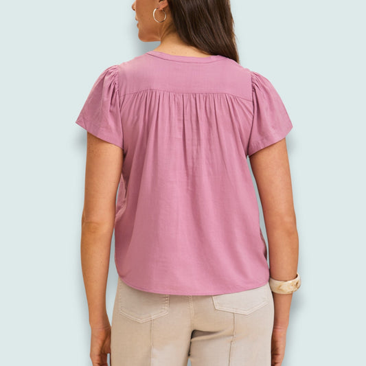 FDJ - Mauve Flutter Sleeve Pintuck Blouse