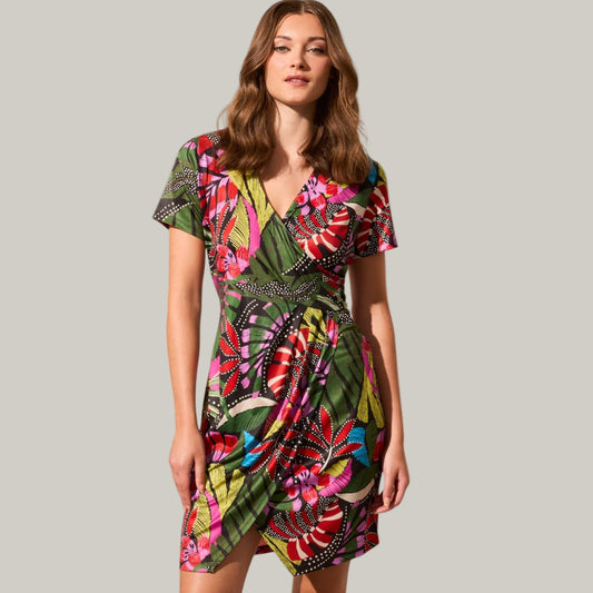 Tribal - Faux Wrap Short-Sleeve V-Neck Dress