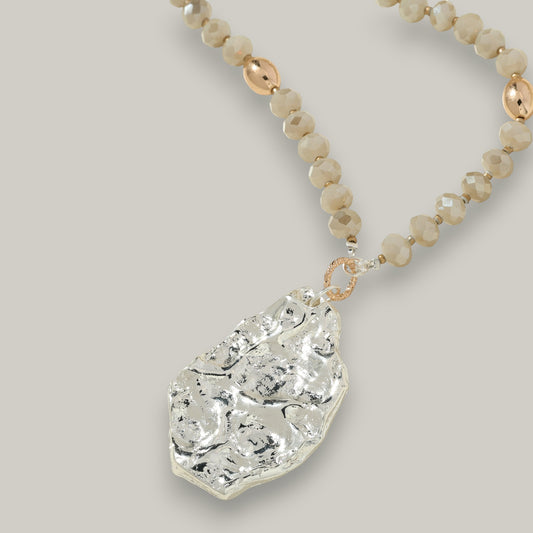 Merx - Beaded Necklace with a Hammered Silver Pendant