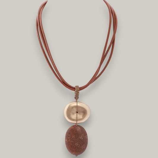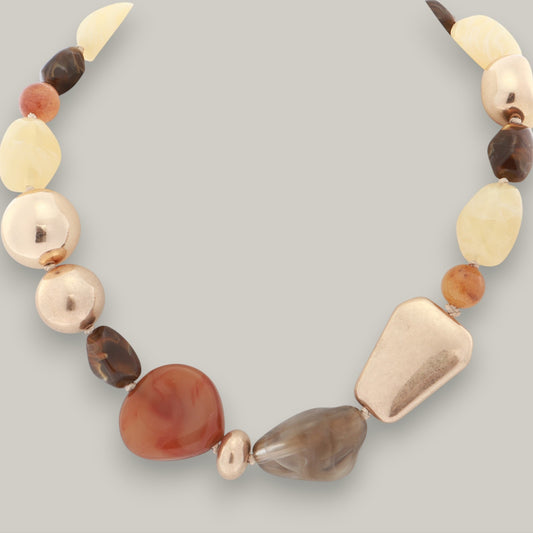 Merx - Matte Gold & Brown Stone Necklace