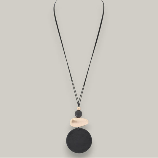 EL-KA - Black Teardrop Circle Necklace