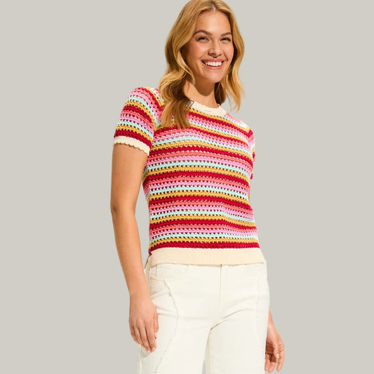 FDJ - Crochet Knit Multi-Striped Top