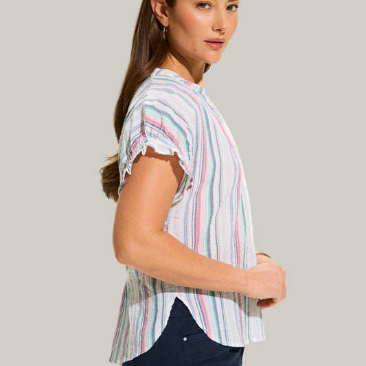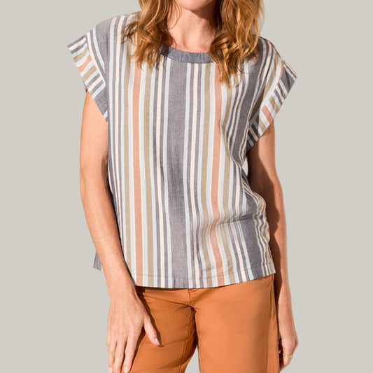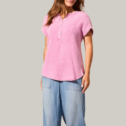 Tribal - Vintage Wash Cotton Gauze Cap Sleeve Top
