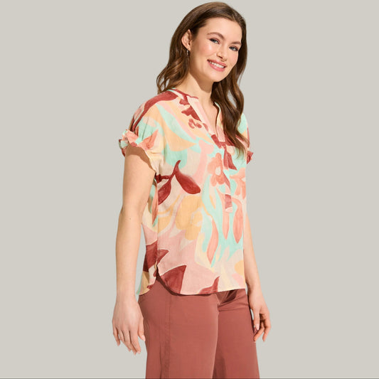 Charlie B - Daisy Print Split Neck Top
