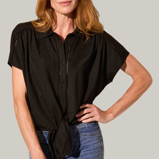 Tribal - Short Sleeve Blouse With Tie Front