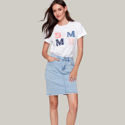 Charlie B - Stretch Denim Skort With Frayed Hem