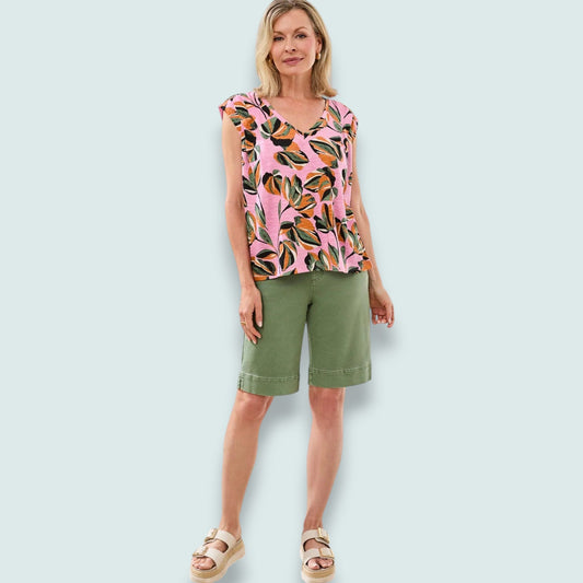 Tribal - Slub Knit V-Neck Cap Sleeve Top