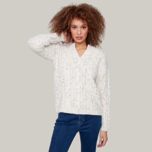 Charlie B - Notched Neck Cable Knit Sweater