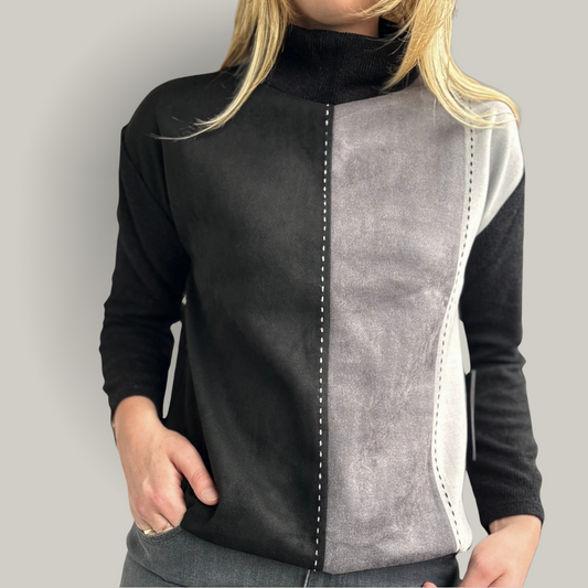 Trisha Tyler - Ultra Suede Color-Block Sweater