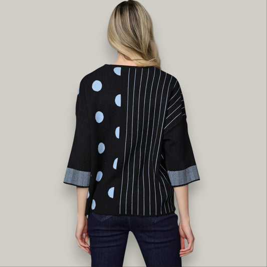 Picadilly - 3/4 Sleeve Striped Polka Dot Sweater