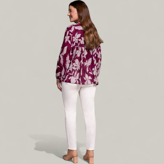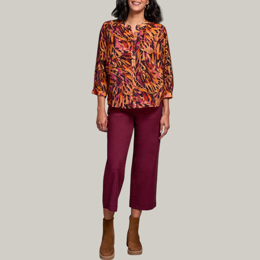 Tribal - Printed Jacquard Pintuck-Front Blouse