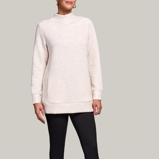 Tribal - Vintage Washed Cable Knit Mock Neck Sweater