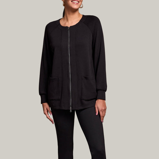 Tribal - Scuba Knit Textured Mock Neck Cardigan
