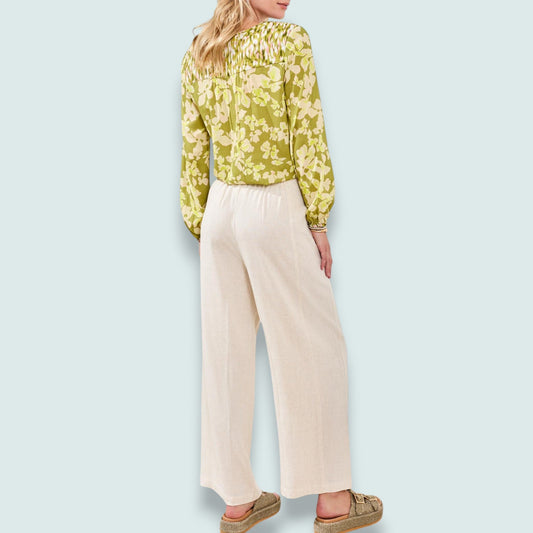 Tribal - Natural Linen-Blend Wide-Leg Pant