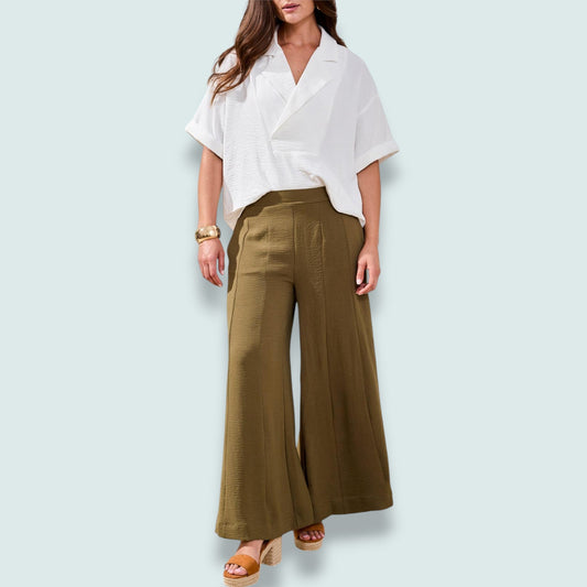Tribal - Mint-Leaf Pintuck Wide-Leg Pant