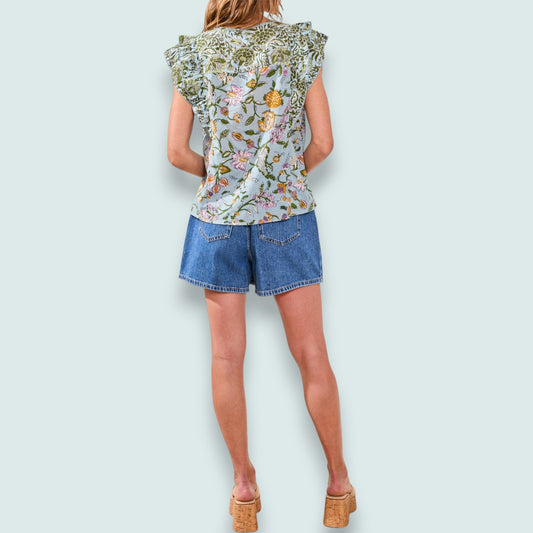 Tribal - Poplin Blouse With Frill Cap Sleeves