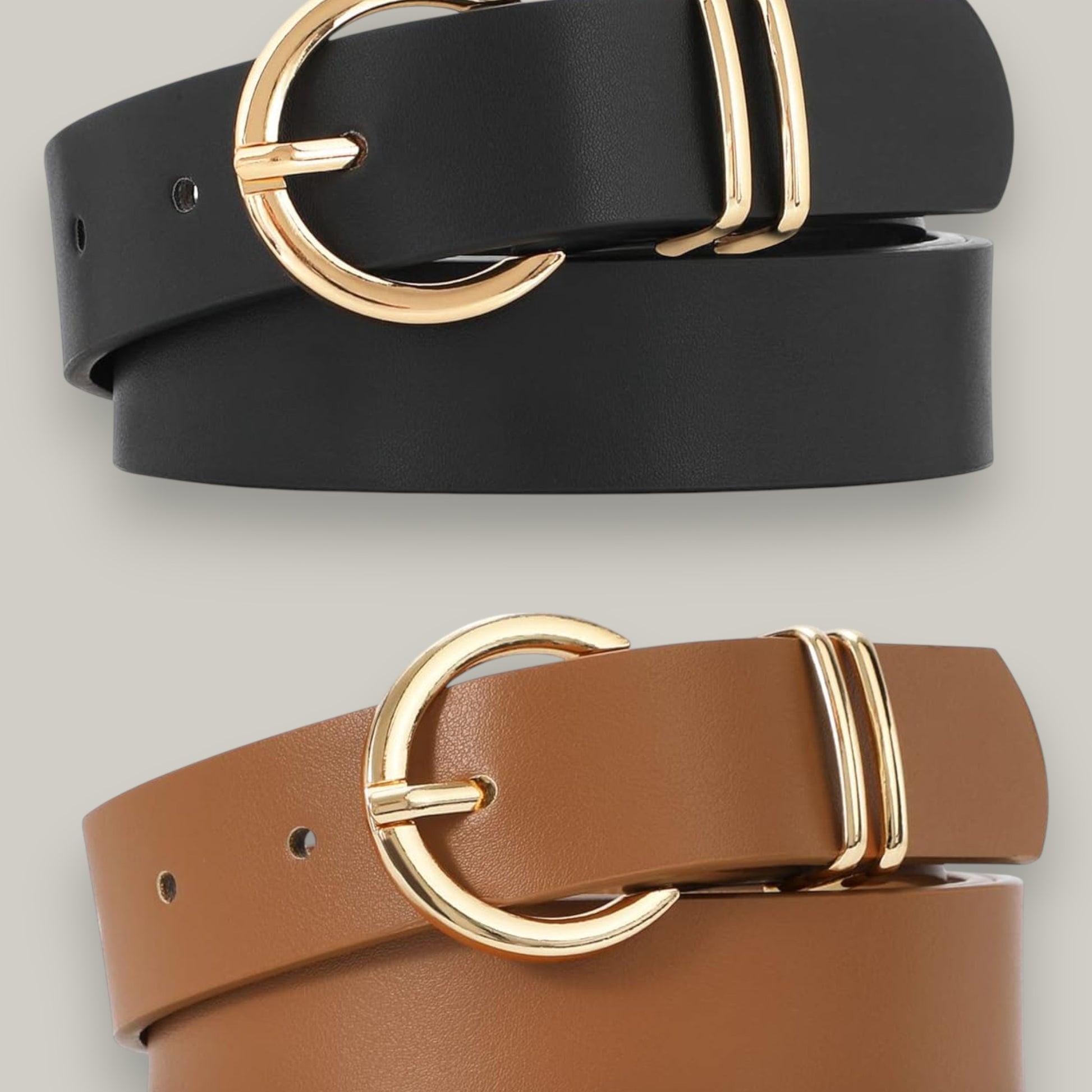 Elevate your wardrobe with Audrey's Faux Leather Belt featuring a shiny gold-finish curvy buckle. Crafted from durable faux leather, this belt complements jeans, casual trousers, dresses, coats, and cardigans effortlessly. Add a touch of designer flair to your outfits while enjoying reliable, stylish support all day long.
