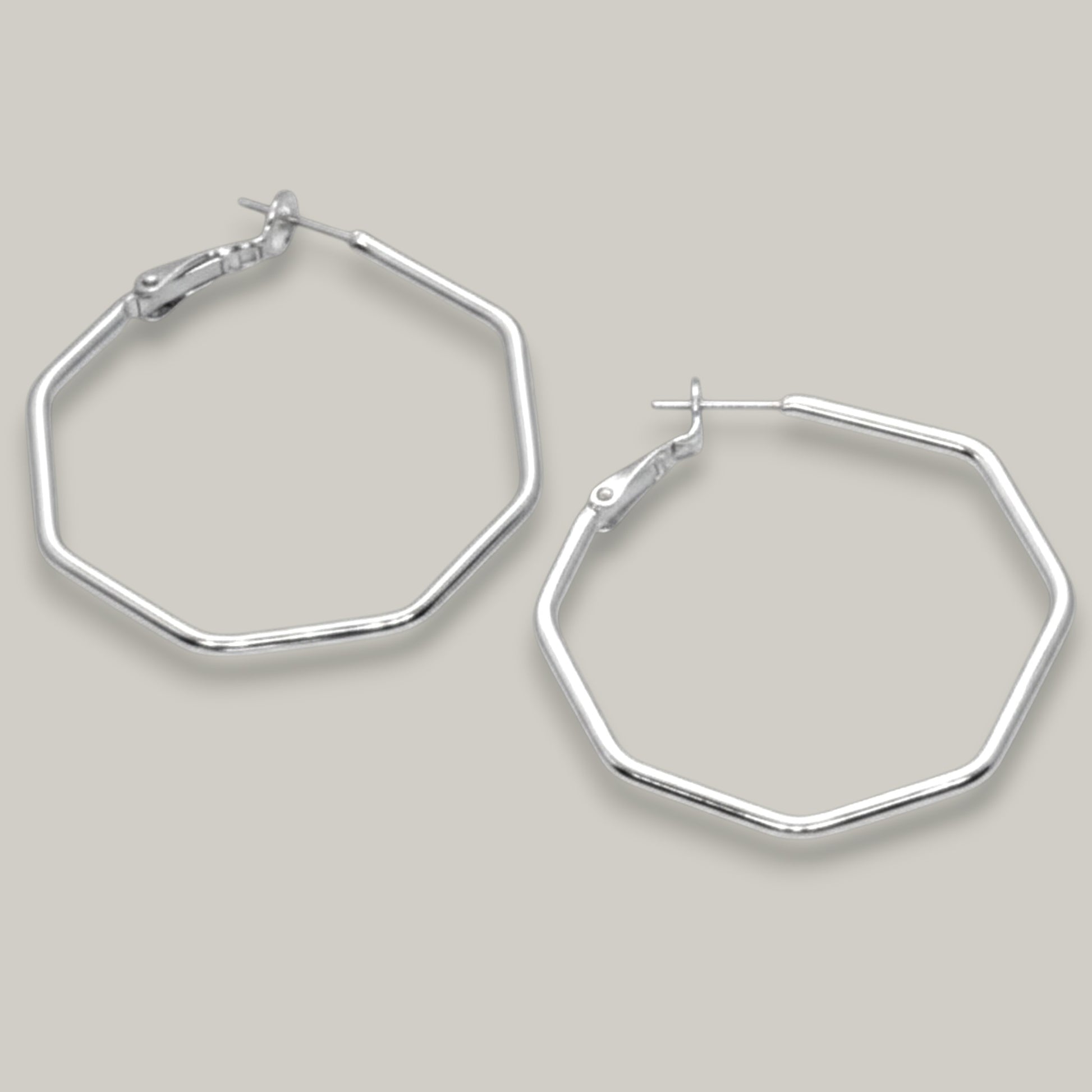 Crisp angles meet mirror-bright shine in these geometric silver hoops—the kind of piece that catches light and compliments in equal measure. Sleek enough for the office, striking enough for evening, they're the modern essential that makes every outfit feel intentional. Frame your face, elevate your look, repeat.