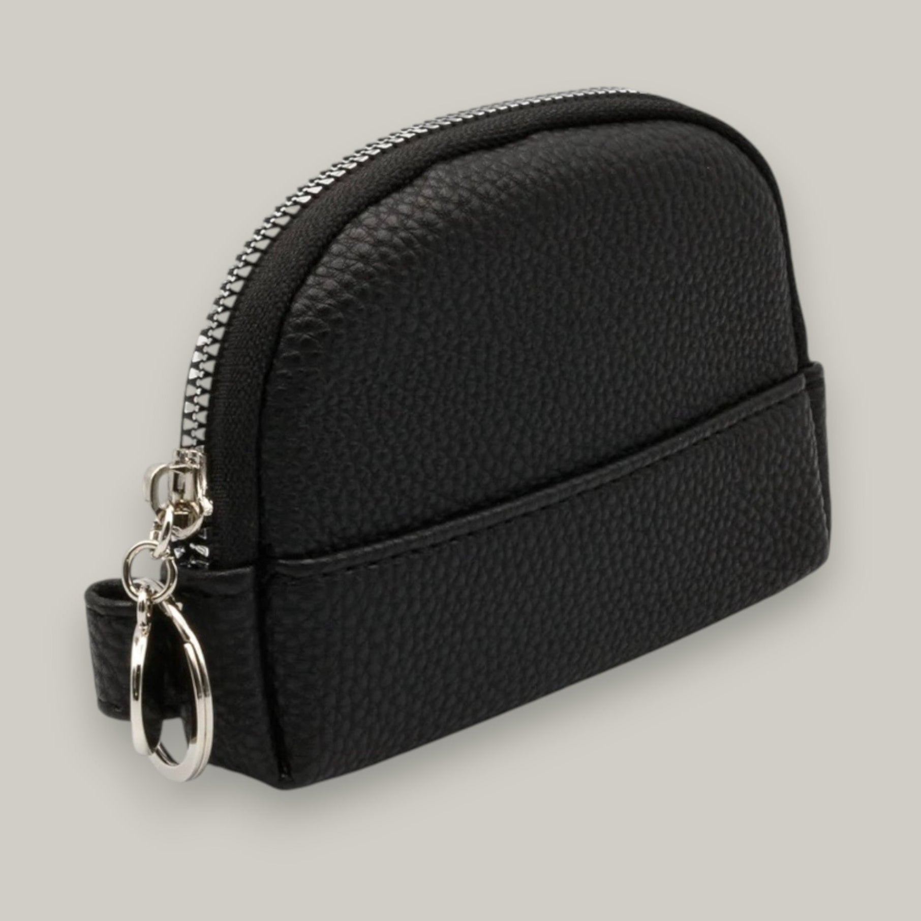 Store your coins, cards, and little must-haves in style with this pebbled coin purse. Made from faux leather, it features a secure zip closure and a convenient side key ring—your playful, pocket-sized partner for all your daily essentials!