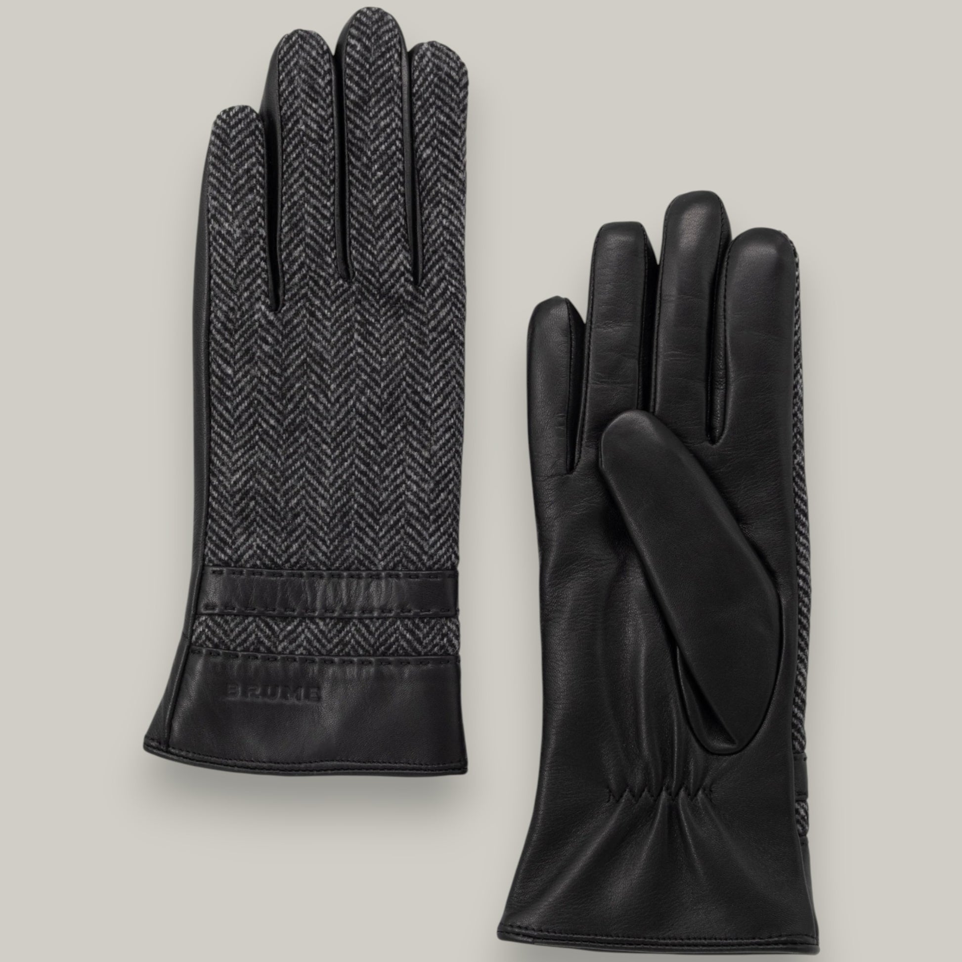 Step into winter with the Brume - Waterloo Gloves, where cozy meets classy. Featuring supple sheepskin leather on the palm and cuff, these gloves offer durability with a dash of elegance. The back sports a charming herringbone knit, adding texture and timeless style. Inside, a plush lining keeps your hands happily warm without overheating. Perfect for chilly commutes or weekend adventures, they add a playful yet polished twist to any cold-weather outfit. Stay warm, look sharp, and let your hands do the talking! Material is 50% wool, 50% polyester. Lining is 100% polyester.