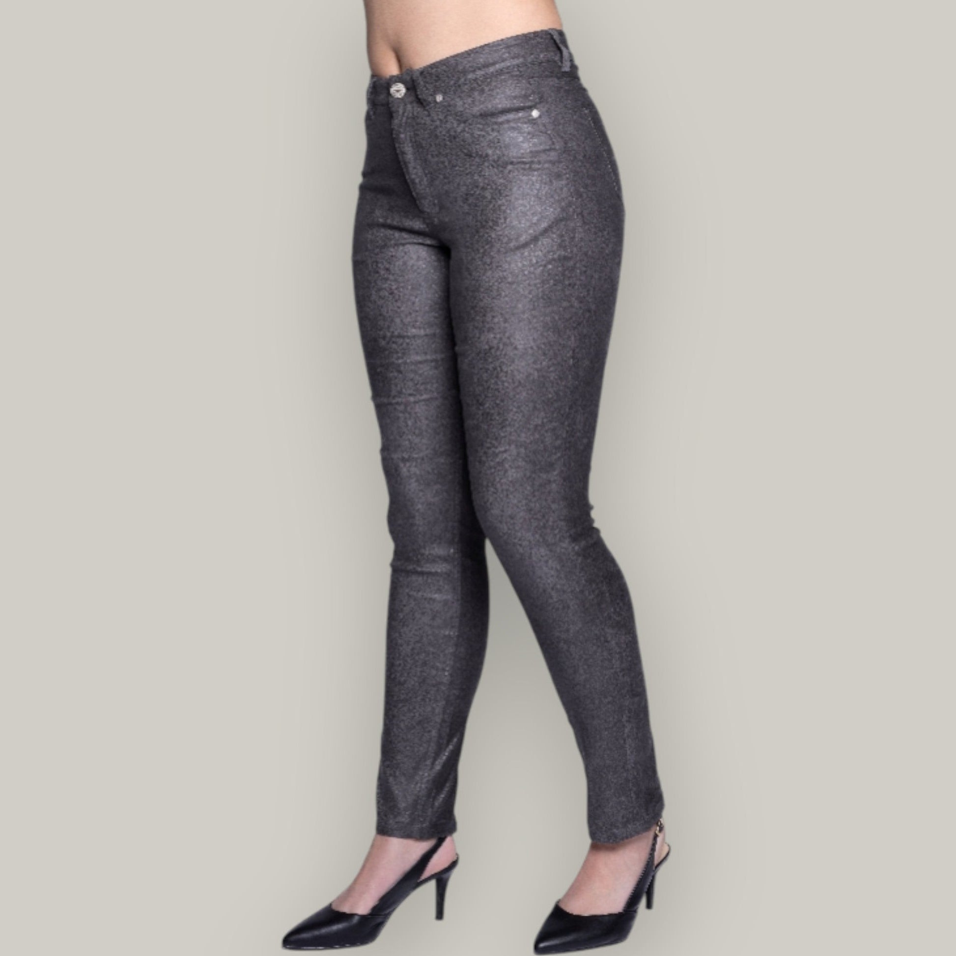 Elevate your everyday look with Carreli's Crackle Effect Slim Pants. The subtle crackle texture adds personality and dimension, while the fitted slim silhouette creates a flattering, modern line. Five handy pockets and a reliable button/zip closure keep you organized and ready for anything—proof that you don't have to choose between looking amazing and feeling comfortable. Material is 92% polyester, 8% spandex.