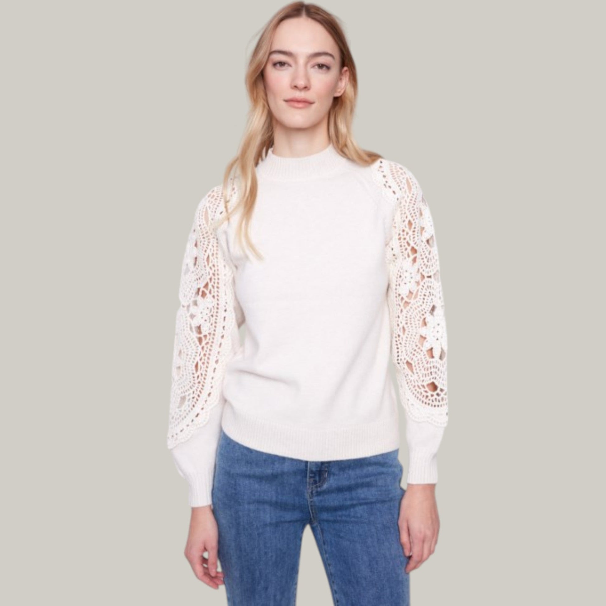 Charlie B - Mock Neck Sweater With Crochet Sleeves