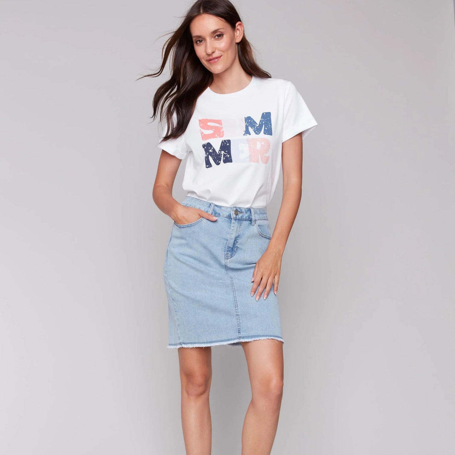 Charlie B - Stretch Denim Skort With Frayed Hem