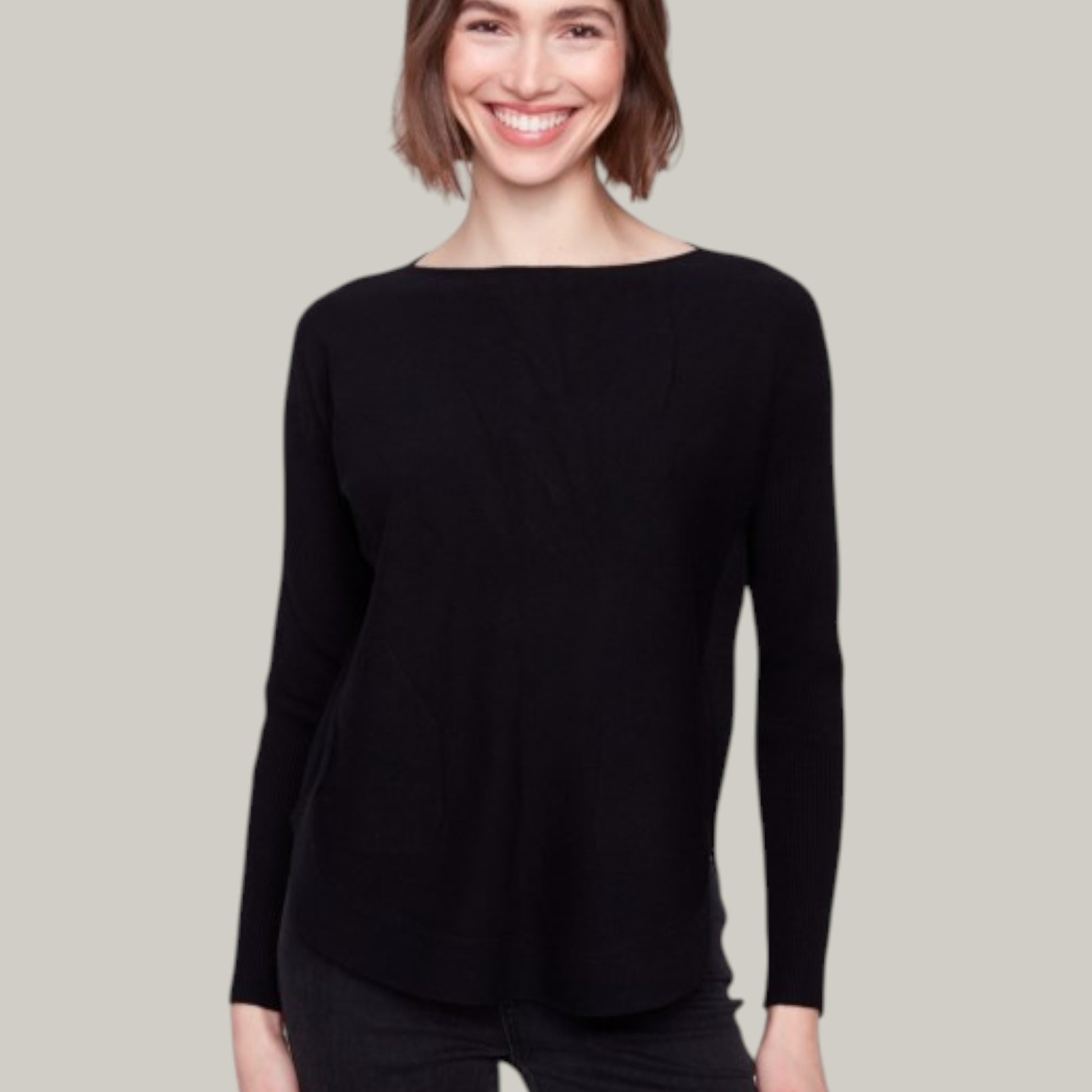 Charlie B’s fan favorite returns in cozy fall hues! This playful sweater features a boat neckline, handy front pockets, and a shirttail hem for a relaxed fit. The standout back lace-up detail with eyelets and ties adds a fun twist, while the lightweight knit keeps it perfect for any season. Effortlessly stylish and comfy, it’s your new year-round go-to! Material is 51% rayon, 27% polyester, 22% nylon.