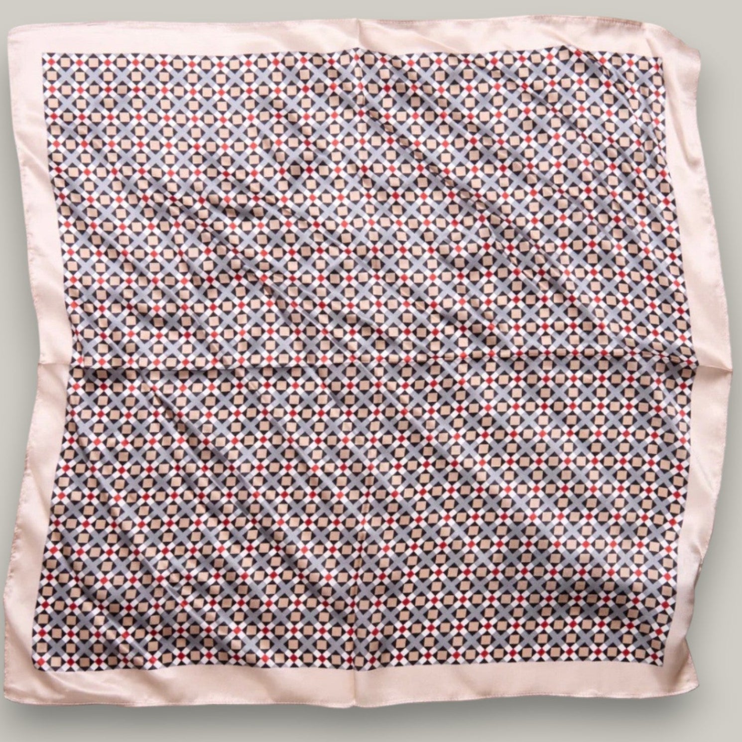 The Difirenze Geometric Pattern Scarf brings a fun twist to your look with its modern shapes and gentle hues. Its silky, lightweight feel makes it perfect for tying around your neck or sprucing up your handbag. Add a playful yet polished touch to any outfit with this versatile accessory. Material is 100% silk.