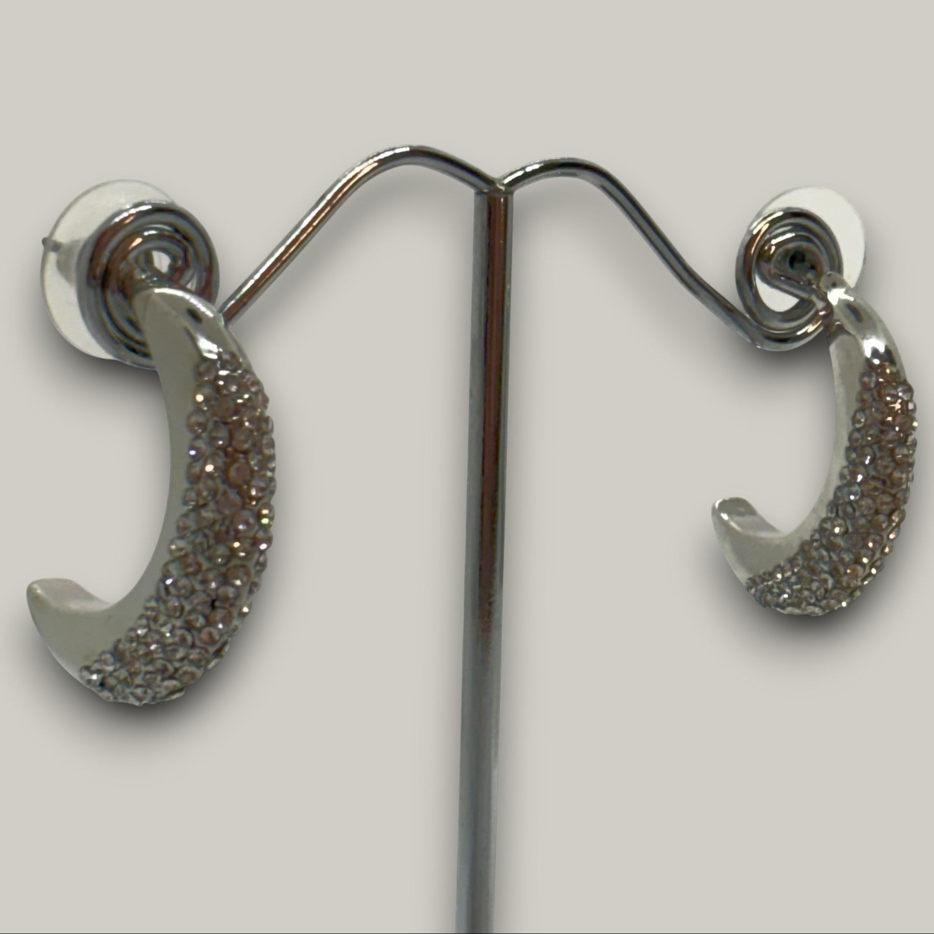 Add a playful sparkle to your style with these sculpted curve hoop earrings. Adorned with dazzling pavé crystals, they effortlessly mix timeless elegance with a modern boutique vibe. Choose from shiny gold or sleek silver finishes to brighten up any outfit with a touch of luxury and charm.
