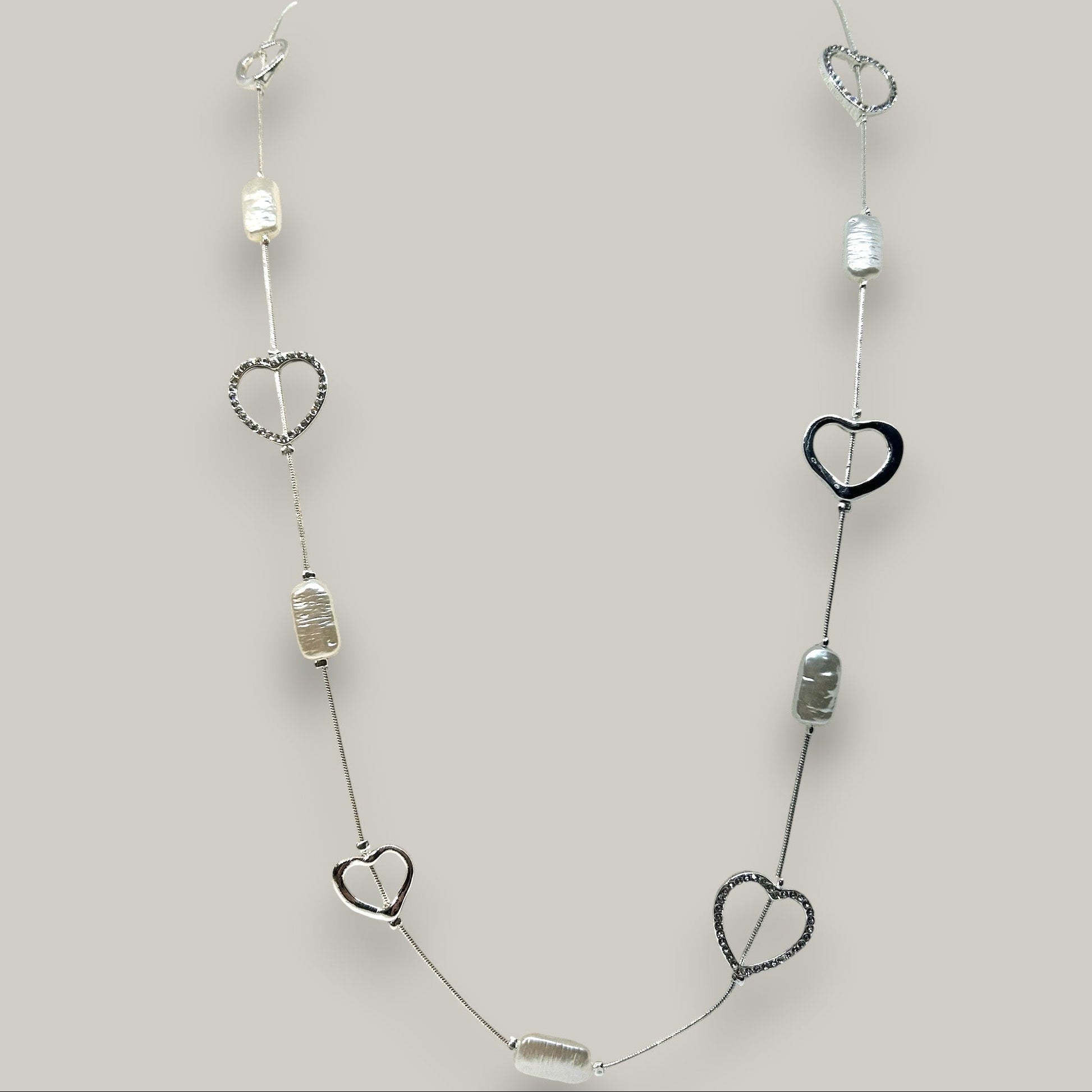 Elevate your everyday elegance with this exquisite necklace featuring interconnected silver hearts paired with luminous pearl-style beads. Its delicate design effortlessly blends sparkle and charm, making it an ideal accessory for both refined daily wear and heartfelt gifting. This piece embodies timeless romance with a sophisticated touch.