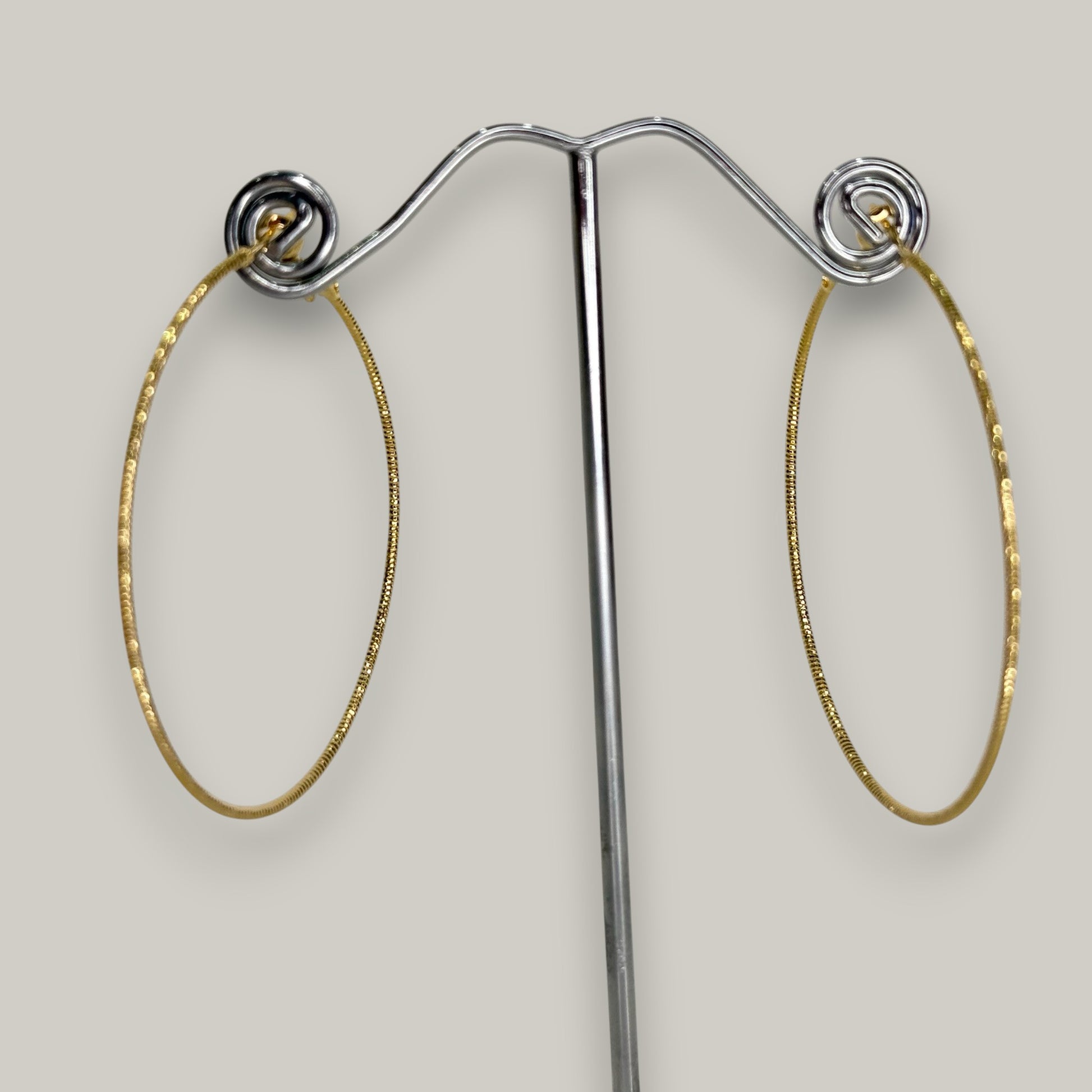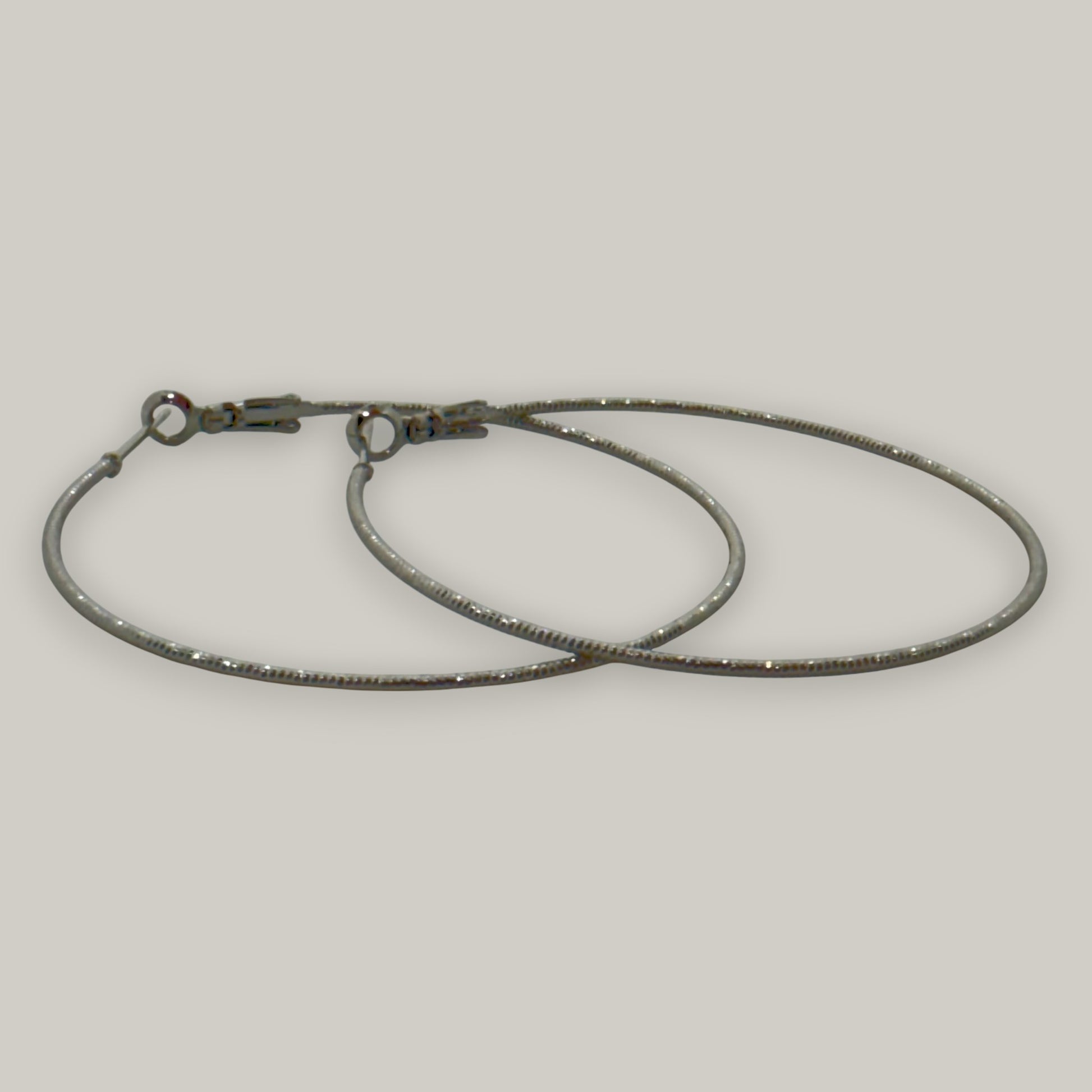 Delicately crafted with a gentle shimmer, these lightweight hoops bring a playful sparkle to your look. Featuring a finely textured finish in your choice of gold or silver, they’re a fresh, fun take on a timeless classic—perfect for adding effortless charm to any outfit.
