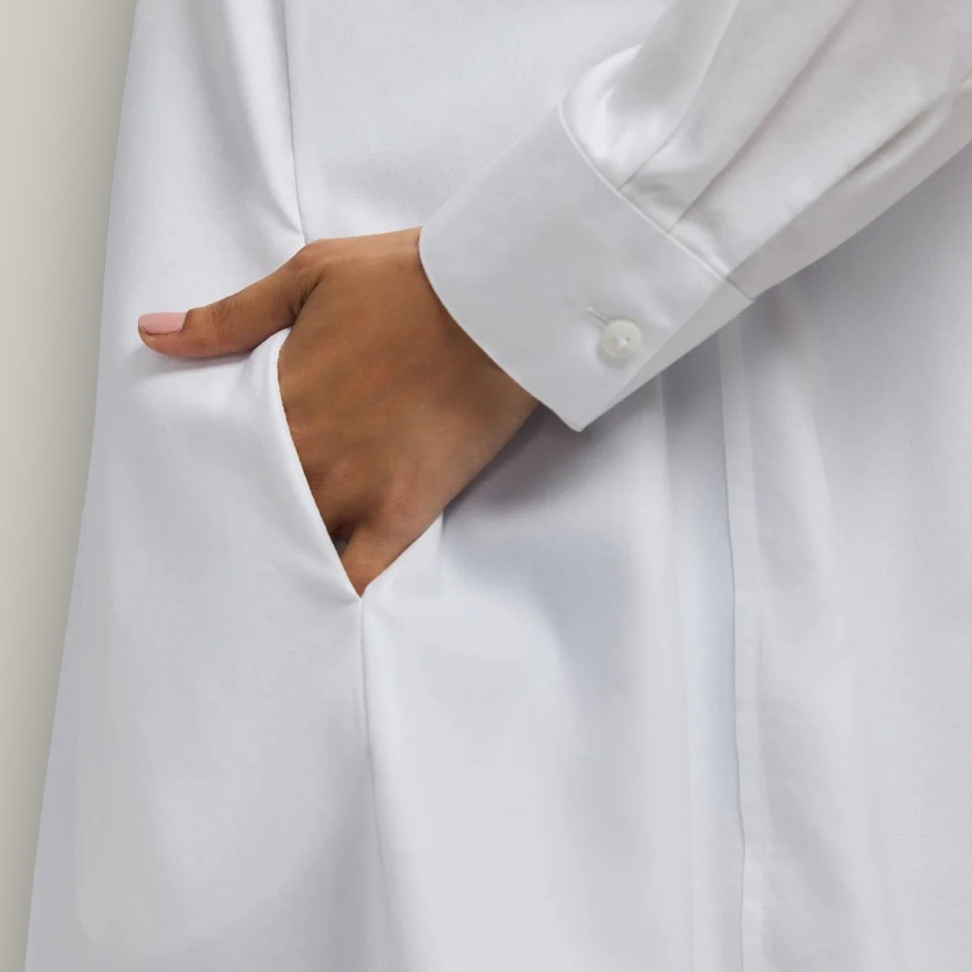 Effortless elegance meets everyday comfort in this Foxcroft tunic. The no-iron pinpoint fabric keeps you looking crisp without the fuss—perfect for busy days when you want to look polished. A classic point collar and hidden placket deliver a refined silhouette, while angled seams and on-seam pockets add subtle style and practicality. Long sleeves and a shaped hem create a flattering fit that works from office to weekend. Slip it on and go. Material is 100% cotton.